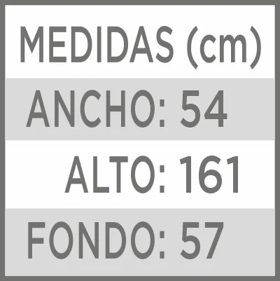 Dimensiones en centímetros: 161 de alto, 54 de ancho y 57 de fondo.